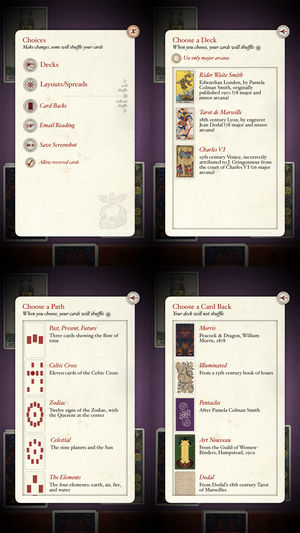 This is a truly beautiful Tarot: three different decks in the palm of your hand, nine spreads, and a hundred other customizations. Touch the cards—slide, flip, grow, shrink, and arrange them as you wish. - Beautiful Tarot includes three decks: Rider-Waite-Smith (78 cards), Jean Dodal's Tarot de Mar…