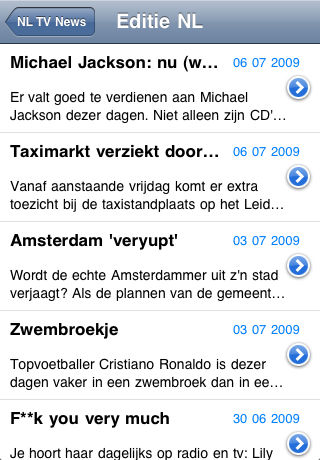 NLTV2 is an app that allows you to stream the latest Dutch News and current affairs podcasts as quickly and efficiently as possible. There is no need for the video to be downloaded and synched as NLTV2 can accept the video stream directly from the broadcaster to your iPhone or iPod Touch. This App is maintained by a Dutch expat living in the UK and it is used on a daily basis to keep in touch with news and current affairs in the Netherlands, usually when riding on the bus to work but some of the shorter items also get watch in the supermarket queue. The video that can be accessed by NLTV2 is the video podcasts of the following programmes: NOS Journaal, Jeugd Journaal, Nova, Pauw en Witteman, EenVandaag, De Wereld Draait Door and Radar. Copyright for the various video podcasts accessed by NLTV2 rests with the respective broadcasters of each these video podcasts. This application requires OS 3.0