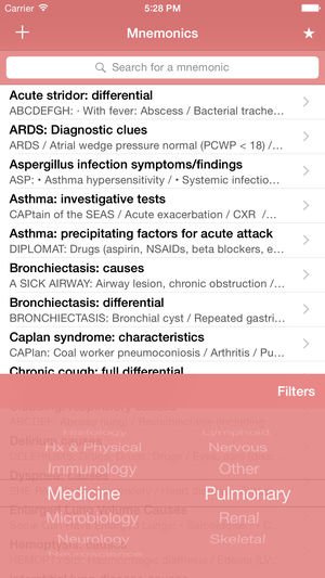 mnemonic, noun: a short rhyme, phrase, or other mental technique for making information easier to memorize [from Greek mnēmonikos, "relating to memory"]. Med Mnemonics is a unique learning tool with over 1900 of them. Mnemonics got me through medical school and the USLME steps. Wherever you are wi…