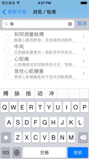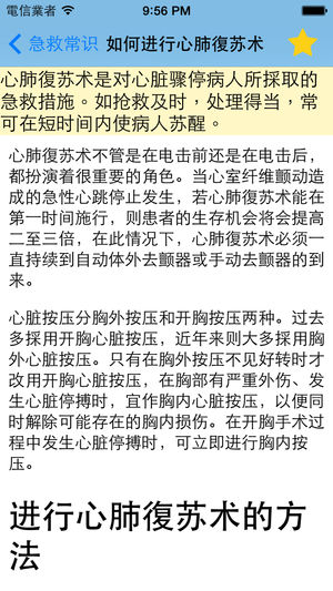 这是 iOS 上唯一提供繁简中文内容的家庭急救产品。 本产品包括数百项各种紧急情况下的急救知识,包括分类、主题、病因及症状、救治方法、注意事项等详情。用家可在简便的分类以及检索介面中快速地找到所需资料。而产品的检索纪录则可让用家随时查看最为常用的资料项。另外在简便的设定中可让用家即时切换繁简中文。 建议请电邮 support@nextoken.com