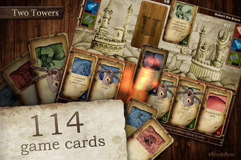 “Two Towers” is a consummate, perfect card game full of fantastic hand-made draw in pencil cards and excellent music. It creates a thrilling atmosphere that will capture your attention for hours. This game is a real challenge to your logical thought, although “Two Towers” is rather easy to understand and to play. You can play alone, with your friends or any other person from all over the world. “Two Towers” demands from you patience, persistence and a strategy to win. If you are ready to fight and become a real hero - play “Two Towers” and show everybody what kind of Warrior you are! Features: • Addictive gameplay; • 114 hand-made draw in pencil game cards; • 28 spells; • Strong AI; • Multiplayer game.