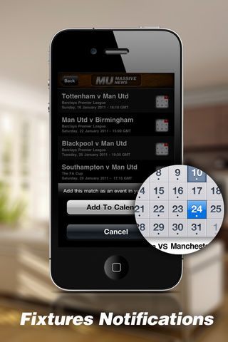 Manchester United Massive - Get all the latest news and videos, along with live text commentary of every game, fixtures, formations and much more! The Best team in the world Manchester United! The most advanced tool for any true Red-Devil - Made by fans for the fans. ★ Application Summary ★ This application is superior to any application out there for the following features: - Full HD Video! - Full length Manchester united Podcast, listen to manchester united news on the go. - Loads extremely fast, 5 seconds to load the default set of news. - All coming fixtures, All leagues. - Match Notification: even if the application is closed you will be notified before each match. - Live updates with 2 seconds delay from real-time. - Create your suggested formation, move or change players. - Create your dream team, very much like Fantasy football. - save your formation to your album or share it directly. - Every article can be posted directly to your Facebook, Twitter and 200 other social services. - Full Statistics, Top scorers, Cards etc. - A nightstand clock which display the time and date along with last / next match information. -Live commentary. - No extra fees. * This application was created by fans, for the fans.