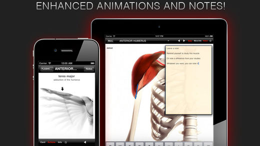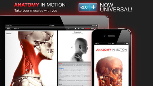 Currently over 25% OFF! Now universal with a beautiful customized iPad interface! *** If you are having problems after the update, please try reinstalling and rebooting your device. NEW FOR (VERSION) TWO Native iPad support! Universal support for iPhone, iPod Touch, and iPad. iPad interface supports enhanced landscape and portrait viewing for enhanced study. Note-taking! Remind yourself to study, jot down a great stretch you learned, or note a difference from your personal references. Enhanced action animations! Higher temporal resolution and motion arrows for improved clarity *** We've been featured in the New & Noteworthy Section of the US App store! *** Thanks for making us the #1 medical app in The Netherlands! *** We also were the #2 medical app in Italy! *** Thank you to everyone for your support! TAKE YOUR MUSCLES WITH YOU BEAUTY & BRAINS Beautifully rendered and medically accurate myology illustrations in high definition Developed by Melissa Finley, Licensed Massage Therapist and graduate of The Swedish Institute NYC HIGH DEFINITION Retina display (for iPhone & iPod Touch) and new native iPad interface with high definition flashcards. MUSCLE BUILDER Unique to Anatomy In Motion, Explore muscle layering, from the skeleton to the most superficial layer Over 450 flashcards, featuring over 225 unique muscles SOLO PERFORMANCE Isolate each muscle individually to clearly view the attachment to the skeleton MUSCLES IN ACTION Over 100 action animations, showing the muscle movements TOP OF THE CLASS Over 650 study questions - USMLE, MCAT, and medical professional board quality Sectional quizzes let you focus your study, while the cumulative exam randomly pulls from all of the quizzes Multiple-choice questions are randomly arranged to keep you challenged Keep track of your progress with the Exam & Quiz Statistics BOOKWORM Searchable Index of every muscle featured in Anatomy In Motion Bookmark your favorite (or least favorite) muscle for further study RECOMMENDED FOR Doctors Medical students Athletes, Coaches, Physical Trainers Physical Therapists, Massage therapists, Chiropractors Try out Anatomy In Motion - Shoulder Muscles, featuring the anterior and posterior shoulder. We have discounted Anatomy In Motion - Complete to offset the cost of this version. Please note - this version requires iOS 4.3+!
