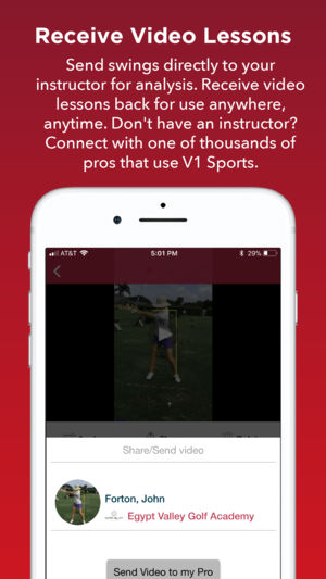 IMPROVEMENT STARTS HERE. The V1 Golf app empowers golfers to be their best. Capture video and send swings to your golf instructor for analysis and video lessons. Have fun analyzing swings on your own with advanced analysis and playback tools. The V1 Golf app is part of V1 Sports’ video technology pl…