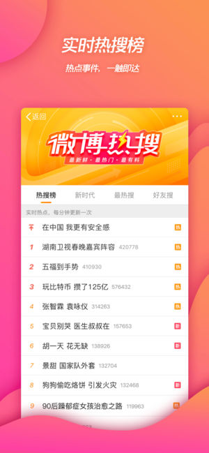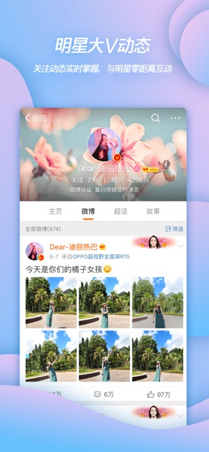 在微博,官方发布新闻,草根爆料八卦; 在微博,大V明星发布动态,粉丝狗仔爆料内幕; 在微博,海量短视频等你来刷,搞笑、音乐、明星、综艺、影视、体育应有尽有; 在微博,第一时间推送你最喜欢感兴趣的内容! 【明星大V动态】 超多大牌明星在微博发布动态,加关注便可第一时间与你最喜爱的明星互动 【微博短视频】 海量高清短视频,新鲜内容极速呈现,随时随地超级省流量! 【热门微博】 热点内容迅速捕捉,推荐给你最感兴趣的内容 【实时热搜榜】 呈现最新鲜、最热门、最有料的热点,想知道正在发生什么,狂戳热搜榜 【发微博】 尽情的表达自己内心的感受,一段独白,几张图片又或是一段视频,几分钟的直播,让世界听到你的…