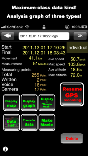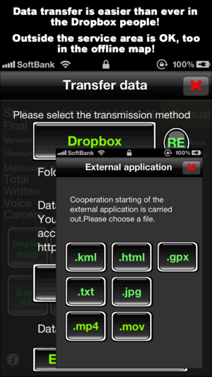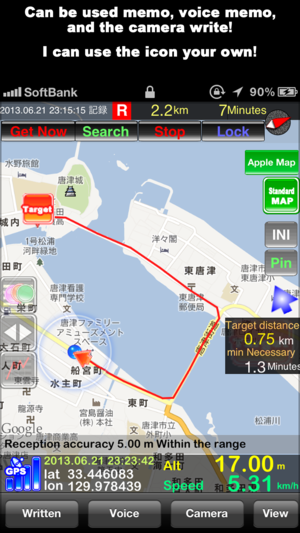 “全球定位系统记录X”是能的测量环境中,如在研究中,在工作过程中的各种操作的记录器,而驱动和在勘探情况下。 它还配备完整预览功能。 我支持电影制作。您也可以发布到发布的视频网站如YouTube! 我完全兼容“Google™地图上”。 支持改变图标的轨迹。 你可以得到图像从相机胶卷,支持改变图标的轨迹。 图形增强真实感也纳入视频! 当你运行它的背景下,电池的寿命显着提高。 支持 图形,轻扫,原来的图标,Google™地图,电影制作,搜索,目标,离线地图,时间表,Dropbox的转移,外部应用程序合作,地图相机,备忘录,语音备忘录,相机写作。 出口 HTML,GPX,KML…