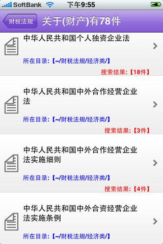 《财税法律法规汇编》隆重发布!!!扔掉笨重的大部头财税法规书吧,把财税法律法规轻松装入口袋,随时随地查阅,搜索吧(无需联网)! 《财税法律法规汇编》 是一部功能强大的财务,税收及经济法律法规汇总搜索软件。本软件共分财会管理,财税,经济3大类, 约300部法规,准则,协定等,是广大的财务工作者,注册会计师及财会专业学生必备的,便捷的专业财税法律法规搜索查询工具。 主要内容包括: ▶财会管理类 企业会计准则,企业会计准则应用指南,会计法,等 ▶财税类 财产税,流转税法,所得税法,税收征管法,各国税收协定,行为税法,等 ▶经济类 上市公司相关法规准则,各类企业法,公司法,物权法,担保法,合同法,证券法,基金法等45部经济类相关法规。 软件特点: 1.具有方便,快速全文搜索功能。(支持文件之间同步搜索) 2.具有方便,快速法律名称搜索功能。 3.具有方便,快速条文内容搜索功能,支持连续快速定位关键字功能。 4.具有方便,快速条文搜索功能,支持直接输入条文阿拉伯数字检索。 5.支持直接输入条文阿拉伯数字,在搜索结果内快速跳转定位。 6.支持电子书方式的轻松浏览阅读功能(点击屏幕左下,右下方实现翻 页功能,进度条拖拽定位功能)。 7.支持全屏阅览模式。 8.支持用户自定义的字体,大小,颜色设置。 9.支持自定义的用户界面,背景色等颜色设置。(任意设置界面颜色风格)。 10.支持自定义的用户图片背景设置。(可以从照片库挑选自己喜欢的图片进行背景设置,透明度可调)。 11.历史记录功能。 12.书签收藏功能。 13.不退出应用程序,直接发送电子邮件功能。 14.便捷的目录索引,及拼音索引。