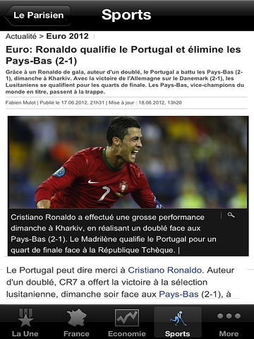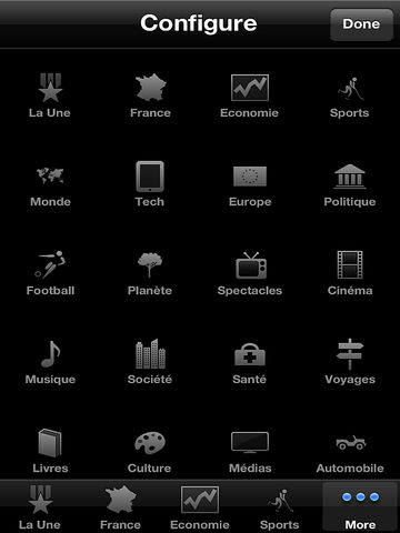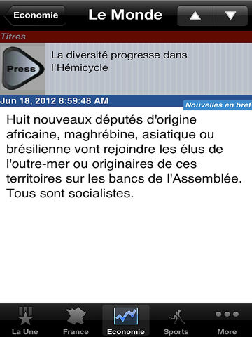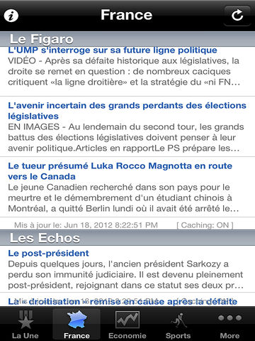 France News is a simple e-news reader. This app brings you the latest up to date news from all the top France news sources. The news from 74 sources are categorized into 19 section as France (National Stories) La Une Economie Europe Sports Football Monde Tech Planete Politique Spectacles Cinema Musique Culture Medias Societe Sante Voyages Livers Automobile Opinions Photos > Offline Caching of News (Works with out internet connection) > Emailing of news articles > Customized news table view > iOS 4.0 & iPad Compatibility > Supports both RSS & Atom feeds > Portrait & Landscape orientation