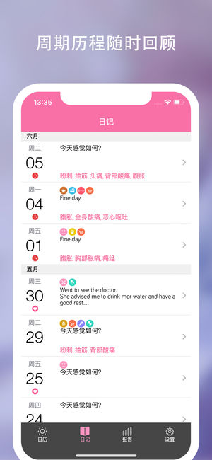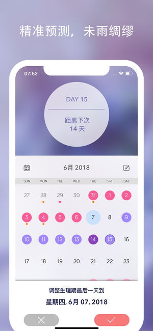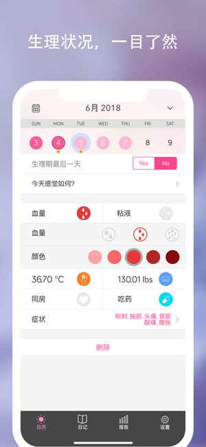 只需一款App就能精准追踪、监控您的生理期,并且提供暖男般的贴心提醒。经过精心设计的Monthly Cycles结合了华丽界面和优雅体验,生理期中的每个阶段都一目了然。另外还有惊喜小功能,为您的“造人计划”提供良辰吉日,生男生女由你决定。Monthly Cycles让您对生活有了更自由的选择:要一个小宝贝或是继续二人世界,都在您的掌握。 精美界面 - 日历界面让周期一目了然 - 特别的日子用不同颜色的符号标注 - 每日记录不同的症状、多少等等 掌控生活 - 经期预测同时兼顾个人状态的波动 - 详尽的图表展示您的变化 - 醒目标注出易孕期,帮助您进行生育管理 - 生育模式中提供日期推算 个…