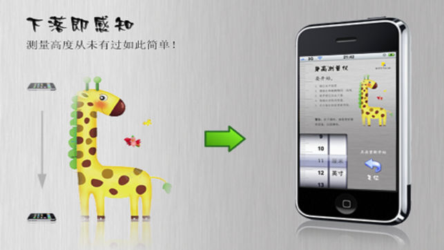 史上最2的软件,您值得拥有! “机”高一筹,让您的iPhone测量任意物体的高度! 使用该应用,您可以测量一张桌子、一把椅子以及各种生活用品的高度,甚至您自己的身高。 为庆祝上新品推荐榜单,限期抢购,5折优惠,敬请体验! 浏览 foxlabapp.com/heightruler/demo 观看演示视频,获取更多信息。 [主要功能] * 高度尺 * 测量直尺 * 支持“厘米”度量单位 * 支持“英寸”度量单位 [快速上手] 1. 将它水平放置。 2. 摆放在和被测物同一高度(保持静止)。 3. 放手使它自由下落。 4. 落地后读取高度值。 5. 点击复位按钮重新开始。 [注意…