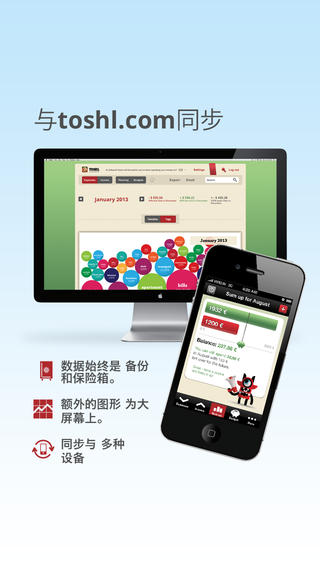 重要:获取最新的TOSHL财务APP(不是这一个) 请更新到Toshl Finance应用程序的最新版本,该应用程序可在App Store中单独下载。 它也被称为“Toshl财务”,具有红色和白色螺旋图标,由Toshl公司出版。它提供了更多的功能和改进。 “監控支出,最難打的一個,所有的應用程序是財經Toshl。” - 紐約時報 “現在我知道我的錢消失,感謝Toshl ...” - BBC 得主歐羅巴獎2013年最佳商務部,財務收支啟動 我們翻譯Toshl!這是一個不斷的過程,所以有可能是缺少一些話還是差了一點。請幫助我們在http://translate.toshl.com/翻譯 軌道開支,收入 - 快速和容易地進入 - 多個自定義標籤 - 重複開支及票據 - 重複收入(Toshl臨) 預算 - 可以很容易地節省金錢和跟踪支出 - 比較你的消費率與一個月的時間 - 一次性預算,每天,每週,每兩週,每月,每年 - 剩餘資金移動到下一個預算 - 從您的預算歷史學習 外幣 - 輸入開支以任何貨幣 - 超過165種貨幣的貨幣轉換器 - 設置一個自定義的匯率 規劃你的財務未來,從過去中學習 - 提前規劃你的開支和票據 - 設置重複開支,並得到一個感覺,下個月的賬單 - 個月的任何一天開始你的財務 - 通過瀏覽任何時間段 Toshl.com - 管理你的財務狀況,在大屏幕上 - 您的數據自動備份和保存 - 可視化你的財務信息圖表 保證它的安全和私人 - 使用密碼鎖定應用程序 您的數據導出 - 導出到CSV - 導出到PDF,CHM,谷歌Docs(Toshl臨) - 自動電子郵件報告(Toshl臨) 的Toshl Pro(應用程序內升級) 的Toshl財務應用程序是免費使用的,但也有更多的特性和功能可供Toshl臨,可以在應用程序內購買。 - 多個預算 - 多個每月重複收入 - 導出到PDF,Excel中,谷歌文檔 - 在網絡上的多個圖形 - 積極人緣配套的;) Toshl開發點 的Toshl Pro - $ 1.99包月 的Toshl Pro - $ 19.99每年訂閱 臨上https://toshl.com/getpro/ Toshl