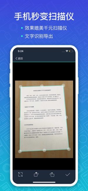 4亿人在用的手机扫描仪,文档管理工具。能自动切除文档背景,生成高清PDF、JPEG或TXT文本。还可以邮件发送、连接打印机、发传真、发微信、存到云端,多设备查看!非常给力的office实用工具! * 全球4亿用户,遍布200多个国家和地区 , * “扫描全能王独有的图像处理技术让文档更清晰”—Makeuseof.com * “没有比扫描全能王更好用的扫描软件了”—CNET.com * “简便易用的文档管理,轻而易举将文档清晰数据化”—Mynavi.jp * “50 Best Mobile App”—时代周刊 ----功能亮点---- 【手机上的扫描仪】 手机拍文档,自动去除杂乱背景,生成…