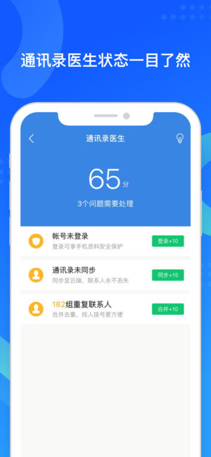 【QQ同步助手,备份你的手机生活!】 30秒换机,6亿国民备份app!资料防丢失 一键备份通讯录、软件到云端,随时下载恢复到手机 ------手机随便换,资料不再丢失------ **智能管理通讯录** 备份管理:手机通讯录一键备份至网络,随时同步回手机 快速整理:批量删除联系人,换机更便捷。智能合并重复的联系人,省心更省力 智能检测:自动检测出已失效号码和常用号码,打电话更方便 随时找回:随时可在月光宝盒中,通过回收站或时光机找回找回误删的联系人 **手机里的智能扫描仪** 合同文件扫描:合同文件快速扫描,智能调整风格角度,一键生成PDF文件文件 名片扫描存储:自动扫描名片,并识别名片信…