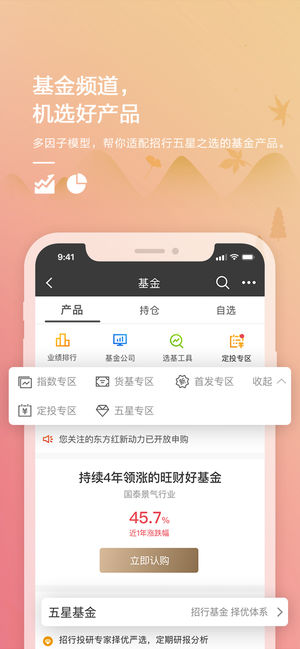 每一分,都值得。 读懂每一分收支,用智慧打理每一分财富。 招商银行App是一款与你息息相关的金融App,不仅因为更聪明的数据智能,让我们能够读懂你,并且,因为更广阔的连接场景,让我们能够为你服务更多。 ●收支账本。看懂收支,人生比你想象的还要精彩。一键生成、多人共享,用你所在乎的视角看收支。 ●理财社区。问对的人,理财比你想象的还要广阔。了解资讯,阅览招行资深理财人物的心得经验,与专业的人自由交流。 ●基金频道。机选好产品,结果比你想象的还要好。多因子选基模型,五星之选产品,招行基金管理大数据,给你更好的选择。 ●城市服务。与招行同城,服务比你想要的还要多。查社保、饭票五折起、影票优惠券、地…