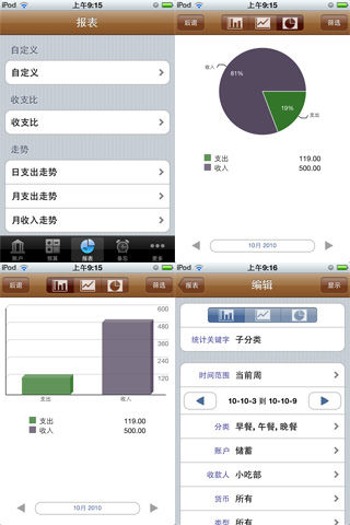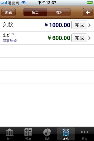 您是否在寻找一款功能全面的个人理财软件?要支持多账户多币种!可以同步!还要方便的备份/恢复数据?『金版管家』不止能满足您这些要求,它更有灵活的预算、多样的报表、备忘、Email导出、启动密码等等多种功能满足您的各种需求! 『金版管家』是在Windeows Mobile平台流行一时的个人理财软件。经过多年时间的考验,听取了大量用户的反馈意见,经过不断打磨完善,铸造了其友善的界面,完善的功能,各种细节处理到位。如果您有较高的理财要求,选择『金版管家』一定没错! 关键功能: * 灵活的多账户支持,您可以让每一个账户对应您的一张信用卡或现金,也可以只使用一个账户对应所有的记录 * 每个账户都支持开户金额和转账,而且在计算余额和制作报表时,开户金额和转账都进行了正确的计算。 * 多币种支持 * 可以与Google Spreadsheets同步,最大成度的保证您的数据安全。您的记录会以月为单位同步到单独的Spreadsheets文件中,之后您可以使用 Google提供的各种功能对这些记录操作,包括统计、制作报表或下载为其它格式的文件 (Excel,OpenOffice,PDF,CSV,HTML,Text)等等。如果您为物品或收据拍了照,照片也可以同步到Picasa Web。您还可以利用Google帐号,在多个iOS设备间同步您的记录。(在大陆境内使用此功能可能需要使用代理,推荐VPN) * 备忘功能!您可以在备忘界面记录下您希望购买的物品清单作为备忘。 * 可以使用USB模式或WiFi无线网络备份或恢复您的记录. * 利用WiFi提供小型Web服务器,您可以在桌面电脑的浏览器中查看您的记录和收据照片,下载ZIP格式的备份或CSV格式导出文件. * 周期性的固定收支自动填充! * 一目了然的历史记录浏览界面, 可以按照不同的时间单位浏览历史记录. * 向导式的输入界面,快捷!方便! * 灵活的预算功能,您可以为随便某几个分类的账目指定一个预算金额。 * 强大的报表功能,不但预设有多种常用报表,您还可以自定义报表,您在查看报表时,可以方便的更改报表所属时间段以及报表类型及样式. * 自定义分类和子分类 * 可以用Email导出指定时间段的记录到您的邮箱,并且可以导入到Excel中做进一步统计. * 可以为每一条记录添加一张照片,照片可以同步到Picasa Web! * 可以设置启动密码保护您数据的安全.