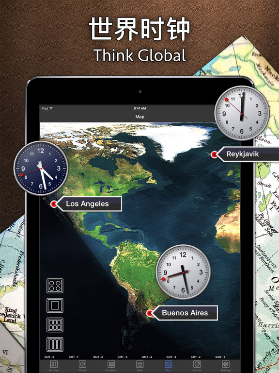 世界时钟意味着商机。它使您可以轻松规划您的职业和私人全球活动! 以苹果为特色:本周iPad应用程序。***最佳世界时钟!*** 必备程序,易于使用,功能全面 世界时钟使您可以选择显示无限数量的世界城市。您可以为选择的时区设定多个铃声。您能够查看广泛选择的世界城市,并且规划您的全球业务或私人关系,不会遇到任何问题。 • 比较视图 这种视图使比较和规划活动真正变得轻松。随时随地,放眼全球! • 世界地图视图 可滚动的世界地图,显示您的城市、时钟和时区。为地图上覆盖的图层提供实时的日光阴影,这将显示一年的季节变化。您能够在具有额外信息的不同世界地图设计之间进行选择。您也可以在世界地图上添加国家和时区。 • 闹钟 为今天、明天或将来的任何其它给定日期规划铃声。您可以为添加的时区设定铃声。我们已经置入了几种铃声。铃声次数会显示在比较视图上,这样您可以轻松形成对所有铃声的概览。当您关闭应用程序或运行其它应用程序时,铃声也将关闭。 • 分离视图 在iPad版本上,您会得到一个分离视图。这个屏幕为您提供您已添加的时区的概览及这些时区在世界地图上的位置。将世界时钟与地球的详细视图相结合。可以使用这种简明的概览追踪其它城市。 • 大钟墙 iPad版本还含有一个屏幕,使用大钟向您展示您的时区,以便您从距离iPad屏幕更远的位置形成对所有时间的完整概览。 可以根据您的需求定制。 我们理解您需要一个可以显示全球信息概览的世界时钟。世界时钟与iPhone和iPad兼容,具有您的职业和私人规划所需的全部特色功能!请观看并使用符合私人和业务意图的世界时钟吧。 • 额外特色功能 - 自动集成的日夜时钟外观 - 在AM/PM和24小时显示之间切换 - 您可以在八种多样化的靓丽主题背景中更改应用程序的设计。 专业而简单的软件 规划您的全球活动永远不会如此轻松!这是一款认真的软件,可以帮助您规划并管理您的会议、家庭及假期。简单、专业的应用程序,适合日常使用。