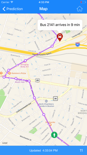 “Where’s my MBTA Bus?” is an app for Massachusetts transit riders who want to know exactly where their bus is and when it will arrive. It can help riders decide if they need to rush or can restfully finish their morning coffee. Features: - Universal app; supports iPad, iPhone, and iPod Touch - R…