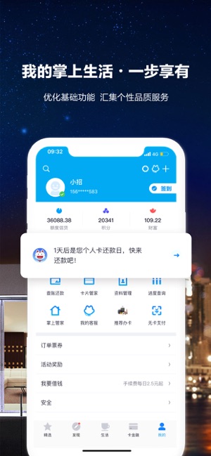 掌上生活v7.0,品质生活,没那么复杂。 掌上生活App由招商银行信用卡官方出品,是一款以智能科技为基础,集生活金融为一体的服务平台。在这里,不仅有多样化的消费金融信贷产品,更有丰富超值品质的生活权益任您挑选。 ●核心功能一网打尽: 【生活】吃喝玩乐必备神器:聚合饭票、影票、小招喵品牌馆、积分礼遇、高端专享和天天福利等板块,新增掌上管家和领券中心。吃喝玩乐一网打尽,福利优惠一手掌握。 【金融】专业智能金融引擎:e智贷全新升级,消费信贷服务个性化智能推荐。一键为您推荐e招贷、e闪贷、e号贷以及还款型、商品型等信贷产品,让您不再为选择而烦恼。 【智能】生活金融智能平台:智能系统全面优化,集合智能…