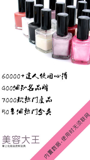 美容类下载长期排行第一,《iphone一言堂》大力推荐软件, 内置数据,使用时无须联网,不走流量。 美女必备软件,专为女性用户设计,知名化妆品一网打尽,当前版本包含达人使用心得60000+,知名品牌近400个,精选热门产品7000款,50多个热门分类。 ********** 汇集当前流行化妆品资料大全,聚合众多时尚网友鲜辣评论,让您在轻松有趣的阅读过程中掌握诸多美容知识。 你是不是经常为使用哪种化妆品烦恼? 你是不是很想知道跟你一样的人在用什么产品? 想送人化妆品又不知道哪种合适? 美容大王聚集了一大批达人,参考她们的年龄 肤质 发质及使用感受,你一定能做出合适的选择。 另有快捷方便…