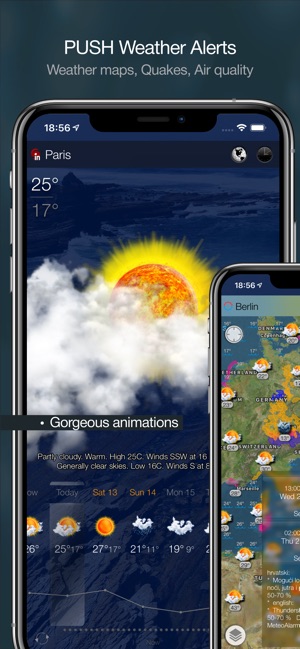 eWeather HD是iPhone,iPad和Apple Watch应用程序,专门用于在一个地方提供您需要的所有天气信息:最准确的每小时天气预报,详细的10天天气预报,气候数据,包括过去的天气状况,风暴路径,潮汐预测,地震,海面温度和浮标数据,空气质量,PUSH天气警报,健康天气警报,动画天气地图和许多其他功能! eWeather以一种非常直观的格式呈现其信息,具有简单,用户友好的界面,包括华丽的动画,小部件,交互式PUSH通知,Siri快捷方式和扩展,iMessage应用程序,带有复杂功能的Apple Watch应用程序以及主屏幕上的实时温度计。 主要特点: √为世界各国提供最准确,…