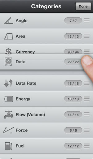 万能转换是一个创新的单位转换/货币换算程序. 采用直观方便的拖拽式操作, 你可以很快地匹配单位. 使用内置的计算器和优化的小键盘, 不用离开程序就可以快捷的完成单位转换. 你还可以把常用的单位组合加入收藏. 这样就不用每次都重新选择单位了, 只需点选收藏中的条目就可以立即开始输入! [功能] 创新的拖拽式操作, 以最快速度匹配单位 优雅的界面 自动更新汇率 内置计算器 查看转换历史纪录 拷贝与粘贴 油耗计算 [支持的单位] 角度 面积 货币 数据 能量 力 油耗 长度 功率 压力 速度 气温 时间 力矩 字体 体积 重量 (质量) 亮度 照度 如果有任何反馈, 请联系: suppor…