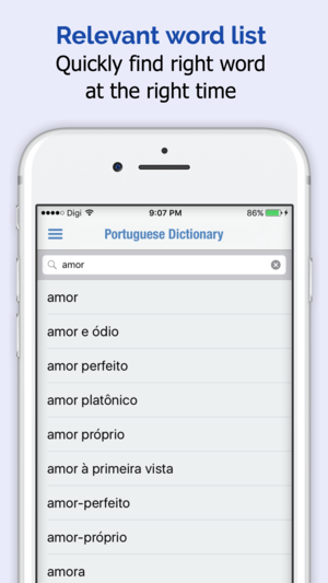 • 英语-葡萄牙语与葡萄牙语-英语双语词典 • 葡萄牙语 -英语单词和短语翻译和译文 • 350000多个单词和短语可离线使用 • 可提供任何句子的离线发音和翻译 • 通过将摄像头指向图像中的文本进行扫描来查词典 • 为学生、教师、游客与语言学习者而设计 • 有检索词典、同义词与反义词 • 翻译单独的单词、短语或整个句子 • 触按一个单词即可进行交叉搜索 • 书签与最新历史记录便于即时检索 • 今日单词可学习雅思(IELTS)、托福(TOEFL)与SAT(学术能力评估测试)单词 • 多个游戏有助于提高英语与葡萄牙语词汇量 • 离线发音有助于适当学习单词 • 今日快闪记忆卡与单词有助于提升词汇量…