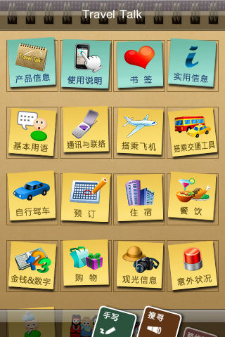 *语言版本 发音:英语/文字:英语与简体中文对照 背包客强力推荐:最好用的旅游语言工具书! 轻松自学,随查随用,一指就通,让你爱怎么玩就怎么玩! 如果你只是到美国进行短期旅行,这正是一套可以助你一臂之力,解你燃眉之急的好工具。你不用勉为其难的在短时间内学好英文,只要发挥“一指功”,即可让美国人为您「指点迷津」,相信比你想象中更容易让美国人理解你所想要表达的事情,顺利地与当地人进行沟通。 这是专为观光、商务旅行、留学等目的所制作的会话手指书,让说英语不流畅或不熟悉英语的您,来到美国后,可透过本软件各种贴心的设计,包括15个主题真实情境会话、Key in/手写沟通面板、搜寻、书签等功能,让你无论是问路、搭乘交通工具、购物、上餐馆、旅游等,都能随心所欲的与人沟通,畅游美国。 出国的前几天,建议你事先浏览各主题的会话,将可能使用到的会话预先标上书签,或进行「基本用语」的练习,这都将有助于你到美国后的临场运用。 *产品特色: • 精选15个主题,包括基本用语、通讯与联络、搭乘飞机、搭乘交通工具、自行驾车、预订、住宿、餐饮、金钱&数字、购物、观光信息、意外状况、生病了、本地文化、娱乐等,并将依需求随时扩充主题。 • 收录4000多句情境会话、2000多个替换词、2000多个常用词,超实用、超丰富的旅游语言数据库,让你出国玩得尽兴。 • 「在地文化」收录了许多当地的节庆祭典、美食小吃、名产等信息与说法,提供你享用美食、购物与游玩时的参考。 • 「实用信息」收录了世界城市、常见设施的名称、衣服尺寸对照表、单位换算、常用单位与量词等内容,以因应旅游途中的不时之需。 • 简易快速的操作接口,让你临场可以即查即用。 • 真人发音的对话,可以帮你说给对方听;外语/母语对照的设计,还能请对方在手机上指出他的回答句,避免你听不懂的困扰。 • 贴心的书签功能,可以帮你预先收录必用对话,方便查看。 • 实用的Key in/手写沟通面板,让你还能透过写写画画来沟通。 • 关键词搜寻功能,让你立即找到想要使用的对话;还能「储存(save)」起来,为自己建立一个快查情境目录。