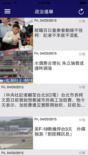 最新! 最快的新聞報導在你的手掌24/7 - 台灣新聞網報的蘋果(iPhone and iPad) 軟件帶給你的最新的新聞消息, 來自所有主要報紙和網站新聞報告. -財經 股市 房地產 -政治 選舉 -兩岸 國際 -生活 社會 -運動 賽事 -醫藥 健康 -家庭 學校 教育 -影星 娛樂 -休閒 旅遊 必須具有上網(Internet 或 WiFi) 連接使用台灣新聞網報軟件. ** DISCLAIMER: The use of any names, words, trademarks, logos, or photos have been used for Descript…