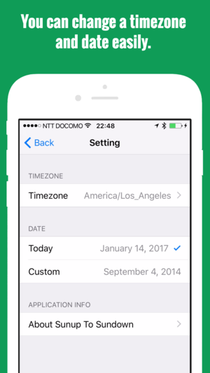 This app is a simple utility that calculates sunrise and sunset times. It shows times which you drop a pin to the map. You can bookmark any location on map and see the information just as quick. Features: - Display sunrise and sunset times - Bookmarking function - Get current location by GPS - Use…