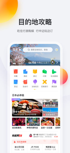 ◆ 黄轩代言:新用户下载注册,即送新人红包 ◆ 苹果推荐:1.3亿旅游用户信赖,好评率98.6% ◆ 旅游攻略:目的地/自由行等攻略,靠谱实用 ◆ 用户分享:游记/问答/点评/图片,真实可信 ◆ 商城特卖:酒店,机票,自由行,签证,当地游,门票,租车,WiFi等自由行产品一应俱全,品质高服务好,用户满意度98.2% 你关心的功能: 【全球60000+旅游攻略 靠谱实用】 1 目的地攻略:必体验、景点玩法、特色美食,让你吃好玩好 2 酒店攻略:热门/特色区域尽在掌握,专享价格,省钱又省心 3 自由行攻略:百万旅行达人分享,像当地人般体验特色吃住玩 【旅游产品特卖 超值齐全 服务保障】 1…