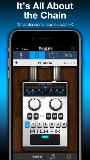 VocaLive为歌手提供了一套12种实时专业声乐效果,以及一系列帮助您练习,唱歌和录制的工具。这些效果可以组合成4个处理器链并保存为预设。包含55个预设的集合可让您立即启动并运行。 VocaLive for Phone包含12个人声效果:Pitch Fix (用于调音或FX风格化), Choir, Morph, Reverb, De-Esser, Delay, Parametric EQ, Compressor, Chorus, Phazer and Envelope Filter,注册后还可解锁双混响效果。这些效果放在一起提供无与伦比的创意处理能力。 使用VocaLive,您可以处理您…