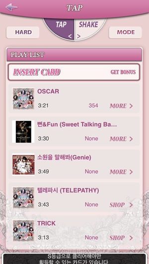 少女時代 SHAKE让你和多次获得亚洲唱片流行榜冠军的 少女時代一起,全新体验音乐。打开“限时优惠”之特价活动。 ********* 轻敲及更多 -- 向左,向右,旋转,摇动 少女時代 SHAKE不仅有传统游戏的“轻敲”方式,也提供一种新型“摇-旋”模式,这是由dooub开发的一种无停顿姿势技术。“摇-旋”模式为游戏带来全新体验,让你可有DJ摆弄唱机转盘的感觉。 Card Deck System 当你完成每局游戏时,纸牌堆牌系统会奖励你纸牌。如果你是粉丝,你能收集到包括明星们未公开照片的纸牌。在游戏模式,那些纸牌能在游戏中用作一个物品来赚取更多得分及获得更多纸牌。 Make your o…