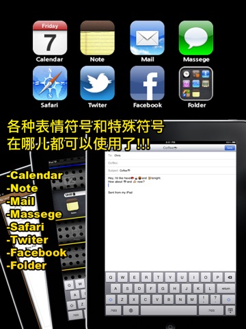 表情符号 - Emoji ☺☀☆☄ HD 五颜六色的表情符号来装饰你的电子邮件、短信(SMS)和推特(Twitter)。现在检查如何设置表情符号键盘,而编辑一下你自己独特的句型。 你可以使用绘文字于: ✓ Calendar ✓ Note ✓ Mail ✓ Message ✓ Safari ✓ Twitter ✓ Facebook ✓ Folder on Home Screen ✓ and MORE ! 特征 ➤ 编辑表情和各种符号。 ➤ 易于复制。 ➤ 为您提供指南。 ➤ 专为iPhone和iPad设计。 ____________________ Emojis are colorful characters to decorate your email, messages, tweets and so on. Now check how to set emoji keyboards and edit your own unique messages with Emoji ☺☀☆☄ HD. You can use EMOJI on: ✓ Calendar ✓ Note ✓ Mail ✓ Message ✓ Safari ✓ Twitter ✓ Facebook ✓ Folder on Home Screen ✓ and MORE ! [FEATURES] - Edit unicodes and emojis. - Easy to copy. - Useful instruction to set emoji enable. - Designed for iPhone and iPad.