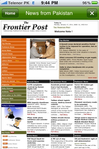 Pakistan News enables you to read Pakistani Newspapers and magazines on your iPhone/iPod and iPad. You can read all major Pakistani news papers and magazines free of charge (after purchasing this application). You can read daily news and stay updated without any subscription charges. Its time to stop paying for monthly newspaper and magazine bills. This app will let you read all the news from all major networks and Pakistan related news from around the globe. You can read breaking news or news about politics, world, major pakistani cities, sports, entertainment and much more.