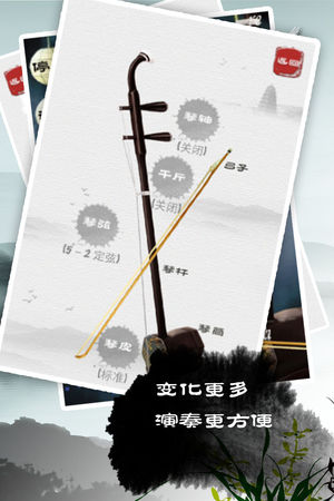 云创新应用大优惠! 所有收费应用大降价,1元购买,仅限这周,赶快下载! MEET Studio民乐系列又一经典,由“古筝”和“魔幻古筝”(Magic Zither)的开发者设计! 二胡又名“胡琴”,唐代已出现,称“奚琴"”,宋代称“嵇琴”。一般认为今之胡琴由奚琴发展而来,现已成为我国独 具魅力的拉弦乐器。它既适宜表现深沉、悲凄的内容,也能描写气势壮观的意境。 二胡是中华民族乐器家族中主要的弓弦乐器(擦弦乐器)之一。唐朝便出现胡琴一词, 当时将西方、北方各民族称为胡人, 胡琴为西方、北方民族传入乐器的通称。至元朝之后, 明清时期, 胡琴成为擦弦乐器的通称。, 意境深远的《二泉映月》…