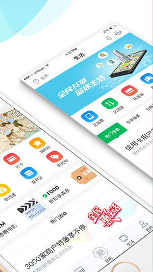 民生信用卡全民生活是民生银行官方唯一信用卡APP,是一款旨在打造“以客户体验为核心”手机银行。全民生活包括精选、金融、生活和我的四个主页,可提供账单查询、还款、积分查询、分期申请、实时调额等基础金融功能,更可提供机票预订、影票购买、话费流量充值、特惠商户查询等非金融服务,搭建出完整成熟的消费场景构架。 金融服务: 在线办卡:您可通过民生信用卡全民生活APP在线提交申请,海量产品,最快3秒核卡。 进度查询:无需登录,办卡进度轻松查。 开卡激活:全民生活APP采用了最先进的OCR识别技术,无需输入,轻松一扫即可激活卡片。 账单查询:历史账单…