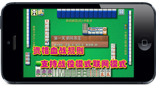 ● 由成都资深玩家开发,绝对正宗的成都血战到底麻将,血战到底(没有胡牌的玩家继续战斗,直到只剩1人或没牌)、杠上花、杠上炮、抢杠、划船、定张、大单吊、自摸加分一个少。画面精美,操作简便,即使从没有玩过血战麻将的玩家也可以很快上手。 ● 游戏支持联网对决和战役模式。联网对决只要有gamecenter帐号就可以加入,邀请你的朋友拿起ipad和iphone一起来战斗吧,彻底告别麻将桌! ● 下载就赠送价值25元的对战1000金币,对战级别参照围棋段位设定,从二十级到九段。巅峰对决,看你是不是血战九段高手? ● 战役模式设定了十四关,难度由浅入深,要想一下通关可不简单哦!关卡根据成都周边的风景名胜设定,可以一边游戏,一边了解成都的景色。游戏人物非常特别,全部是成都周边的各种美食,这个可不是又贵又难吃的所谓“美味”,而是成都资深美食人士的倾力奉献,就算是本地人也不一定都知道哦! ● 根据你的战绩设定了网络对决英雄榜和血战英雄榜,看看你到底是第几条好汉! ● 游戏分别对ipad、iphone及retina显示界面进行了优化设计,支持屏幕自由缩放,操作方式更加快速、方便。 ● 支持本地人配音和系统设置功能。 ● 在IOS 8.0,iPhone6&plus,iPad air2, iPad mini2测试通过。 ● 游戏规则简介: 1.采用血战麻将最为通用的规则,麻将牌108张,只有筒条万,游戏中只能碰牌不能吃牌,必须缺一门才能胡牌,打牌前必须定张(指明自己缺哪门),在打缺指定花色前不能出其他牌。 2.打牌过程中一方胡牌后,剩余家数继续游戏,直到只剩1人或没牌为止。 3.杠牌加分,引杠承包并双倍底分,暗杠在场每人双倍底分,明杠每人给底分,弯杠(就是拿牌后没有立即明杠的情况)不加分。 4.自摸加底分,赌牌(遇到胡牌情况不胡)再次过手前不能胡牌(除非番数不同),最后四张牌必须胡牌。 5.允许一炮多响,即一张牌多人同时胡牌。 6.出现杠上炮时,点炮玩家要把杠牌收益转移给胡牌玩家。抢杠时,不认定为杠牌。 7.胡牌种类主要有:素分一番、对子胡两番、清一色三番、清对四番、带幺三番、将对四番、暗七对四番等。 8.附加番数主要有带根,即每具有四张一样的牌番数加1(包括杠),杠上花加一番,杠上炮加一番,抢杠加一番。结帐时按照胡牌番数减一的2的指数,如清对就是8倍底分,自摸加分和杠牌另计后累加。 9.黄牌后将查叫,没有下叫的玩家赔分给下叫玩家,赔分按照理论上下叫玩家的最大番数计算。同时黄牌时,没有下叫的玩家将把杠牌赢得分数退回其他玩家。