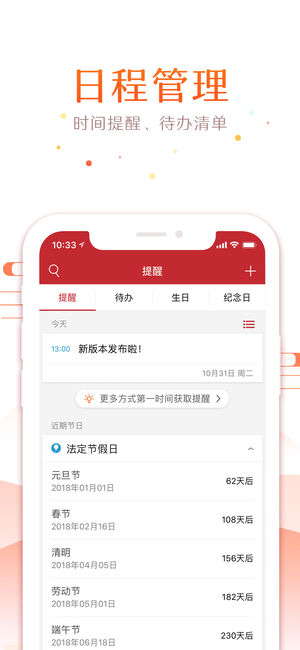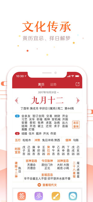 万年历,全球3亿用户选择的日历App!可适配iPhone/iPod/iPad各种机型。 提供万年历查询、日历查询、公历农历转换、天气预报、黄历宜忌、精彩资讯、日程记事、节日节气、生日提醒等实用功能。 独家特色功能,等您来体验 【每日一言】一副美图、一句美言、感悟人生 【择吉日】做生意、结婚、搬家、订合同选个好日子,一切更顺利 【星座运势】专业的星座测算大师,帮您排解心中的疑惑,给您带来好运气 【周公解梦】帮您破解梦境,避凶卜吉!每月运势分析,解析2018生肖运程 【观音灵签】问签占卦哪里去?万年历里找答案!观音灵签,答您所求,解您所想 【财喜罗盘】想知道今天的财神喜神方位吗?轻点手机,打开万…