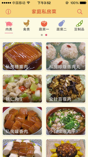 私房菜, 源于宫廷而流落民间, 逐步融合各地之长, 展现私家风格。私房菜并非意味着精蒸细做鲍鱼和燕窝等高档原料, 而是对白菜、胡萝卜等普通菜品的原创, 开掘出它们的另一种味道。只要有一种别人无法抄袭的味道, 就是值得用心品尝的私房菜。做私房菜, 做的是乐趣、品的是成功。 本APP的家庭私房菜, 由知名烹饪大师精心编著而成, 内容力求简便实用, 易学易懂。每道菜品都在用料、制作及特点等方面作了详细讲解, 同时还介绍了原料搭配、饮食禁忌和制作注意事项等, 在学习烹饪技艺的同时, 还能学到许多营养知识。 本APP收录了六百余种私房菜的菜谱,均配有精美实拍菜肴图片,并可方便的用邮件或微博和您的好友分…