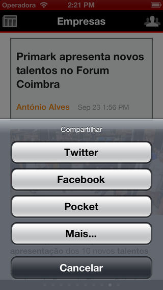 A aplicação de Notícias mais vendida no Reino Unido, Canadá, Alemanha, Itália, Espanha está agora disponível em Portugal!!! Jornal: O Açoriano Oriental, Jornal de Notícias, Diário de Notícias, Público, Povo Livre, A Bola, Expresso, Diário As Beiras, Record, Blitz, A Voz da Póvoa, Diário de Coimbra, O Jogo, Mundo Universitário, Destak, Sol, Correio da Manhã, Póvoa Semanário, Avante!, A Cabra, O Benfica Algumas características: + Grande seleção de jornais + Leia cada jornal por secções + Deslize para a esquerda ou direita para ver os artigos + Um toque para partilhar o seu artigo no Facebook. Ou pode copiar, enviar por e-mail, abrir o artigo no Safari + Browser integrado na aplicação para ver o artigo original + Sincronize automaticamente os jornais no lançamento (pode ser configurado através das Definições.app) + Um toque para sincronizar todos os jornais/blogues com o seu iPhone/iPod Touch. Pode ler todos os artigos de jornal sem ter ligação à Internet + Capacidade de reorganizar os seus jornais/secções + Capacidade de utilizar a aplicação com VoiceOver Alguns comentários dos nossos utilizadores sobre a nossa aplicação até agora: + “Grande seleção de novas fontes e acesso fácil às histórias do meu interesse.” + “Design UI simples, tudo à distância de um toque com o polegar” + “A melhor aplicação de notícias existente” + “Correções para viciados em notícias” + “A aplicação de notícias mais completa de sempre na AppStore” Saiba mais no nosso blogue sobre as novidades e a utilização de novos recursos: http://sunflowerapps.com Gostamos de ouvir as suas opiniões, não hesite em enviar-nos uma mensagem para: support @ sunflowerapps.com ou pode simplesmente escrever um comentário na AppStore