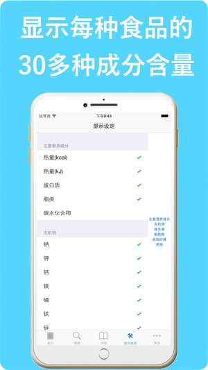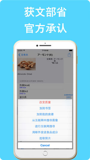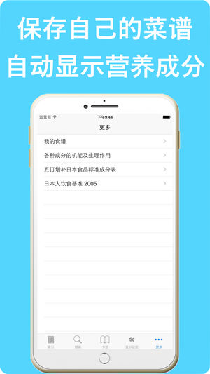 日本人以长寿,健康闻名于世,其日常的饮食和生活习惯起着决定性的作用。 为了帮助大家了解日本的食品的营养成分和饮食标准,我们开发了这个专门用来快速查找日本食品营养成分的工具程序,因为绝大部分日本的食品来自中国和海洋,所以对中国人来说也有极高的利用价值。 该程序的全部数据来自日本文部科学技术省公布的[日本食品标准成分表(增补第五版)]。 ****在决定购买之前,请细读程序的说明和注意事项**** 此程序对下列人员会有极大的帮助: 1,正在进行饮食疗法以及需要饮食管理的广大生活习惯病患者。 2,从事饮食营养配置及营养学研究的专业人员。 3,希望更加合理搭配日常饮食的广大群众。 功能特征:…