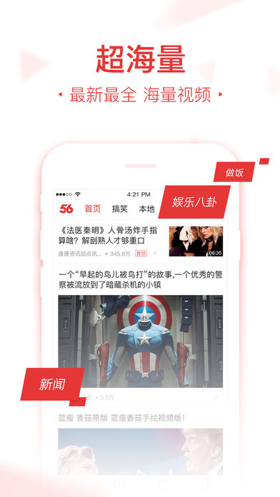 56 视频 看我所爱 蛰伏已久 重出江湖 懂你 最懂你的视频资讯软件 资讯 资讯最快送达的视频软件 丰富 内容最丰富的视频软件 便捷 使用最便捷的视频软件