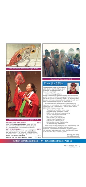 Sacred Hoop, the world's leading magazine about shamanism, shows you ancient ways to enrich your life, and bring healing and a deeper creative connection with the sacred spirit of Creation. Sacred Hoop leads you into the ancient way of the shaman, traditions many tens of thousands of ways old, and…