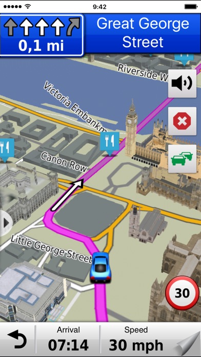 Download Garmin StreetPilot® Western Europe and give your iPhone® or iPad® the best in GPS navigation with free safety camera alerts, photoReal junction views, 3D buildings and more. Garmin StreetPilot Western Europe is packed full of great navigation features from Garmin, the world leader in GPS navigation. The app includes free access to real-time safety camera updates with community-generated alerts, and is the first iPhone navigation app to include photoReal images of complex junctions to help you navigate with confidence. It also includes rich mapping with detailed 3D buildings and landmarks, lane assist and many other advanced features, while remaining simple and easy to use. Optional in-app purchases include integrated 3D Traffic Live updates, photoLive traffic cameras and fuel pricing. Features: • Industry-leading Garmin user interface • Voice-prompted, turn-by-turn directions including spoken street names • Millions of preloaded points of interest including fuel stations, restaurants and other businesses • Quick-search shortcuts to access your most common search terms • Integrated Google™ Local Search • Maps for Western Europe installed on your iPhone or iPad • 3D buildings and landmarks • Lane assist with photoReal junction view provides a photo-realistic illustration of the correct lane for different maneuvers • Integrated Speedwatch red-light and speed cameras including community-generated alerts (where available) • Speed limits for most major roads with the capability to report speed limit changes or errors • Where Am I? emergency locator shows your exact latitude and longitude, the nearest address and intersection, and the closest hospitals, police stations and fuel stations • Exit services allow you to quickly see services such as restaurants, fuel stations and lodging available at exits along your route • Trip planner allows you to create a route with multiple stops in advance with automatic or manual ordering of destinations • Address book integration so you can easily navigate to contacts • Trip computer includes a compass heading and bearing indicator, resettable odometer and trip statistics such as arrival distance, next turn time and average moving speed • Trip log enables an electronic breadcrumb trail that shows you where you’ve been • Weather feature shows current conditions and a 5-day forecast • Location sharing via Facebook or SMS Garmin StreetPilot has been designed to run on iPhone 4S, iPhone 4 and iPhone 3GS, and it works on GPS-enabled iPads as well. Map Coverage- Garmin StreetPilot Western Europe Andorra, Austria, Belgium, Corsica, Crete, Denmark, Finland, France (w/ Corsica, French Guiana, Guadeloupe, Martinique, Réunion, St. Barthélemy), Germany, Gibraltar, Greece, Guernsey, Iceland, Ireland, Isle of Man, Italy (w/ Sardinia), Jersey, Liechtenstein, Luxembourg, Malta, Monaco, Netherlands, Norway, Portugal (w/ Azores Islands, Madeira), San Marino, Sardinia, Shetland Islands, Spain (w/ Canary and Balearic Islands), Sweden, Switzerland, United Kingdom Speedwatch Safety Cameras Coverage Austria, Denmark, Finland, Germany, Greece, Ireland, Italy, Luxembourg, Netherlands, Norway, Portugal, Spain, Sweden and United Kingdom Note: Continued use of GPS running in the background can dramatically decrease battery life.