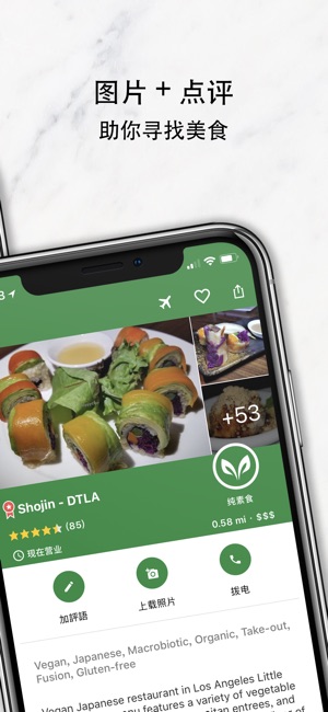 美国有线电视新闻网络(CNN)、纽约时报和卫报精选推介:应用程序商店首选、蔬食和素食餐厅指南第一位。自1999年以来,免费在线使用的HappyCow网站已覆盖180多个国家。在HappyCow搜索,身处世界任何地方,都可以找到当地蔬食餐馆或咖啡厅。阅览三十多万个(300,000+)当地的点评,包括提供素食选择的企业和蔬食烘培店,健康食品店,素食餐饮,农贸市场,果汁吧、咖啡厅等等。 精选功能: *搜索过滤器按关键字可筛选地点,蔬食,素食,商店等等 *利用关键字可更精准筛选结果,对身在包罗万有的大城市中,更易将选择结果范围缩窄,如披萨、汉堡、有机、日式、烘培,墨西哥式,无麸质,生机饮食,等等…