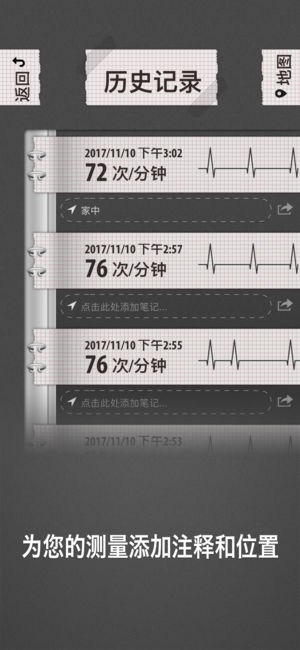 Cardiograph是一款测量心率的应用程序。通过使用该应用程序,您可以保存您的测量结果,以供日后参考,你还可以将不同群体的测量结果记录到个人档案,添加注释和地点,甚至打印您的测量结果,共享或安全保管。 Cardiograph使用您设备内置的摄像头拍摄您的指尖并计算您心脏的频率-专业的医学设备也是使用这种方法! 不错,很好很强大。值得下载 船长gz - ***** 挺不错的,心率测试比较准确,而且数据能云保存,很方便 chensulin - ***** 感觉很专业'加油 gg猫 – ***** 和家里血压计比对过,结果差不多。挺实用的。 小新_lhb - ***** 以后更准确…