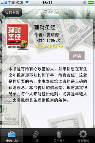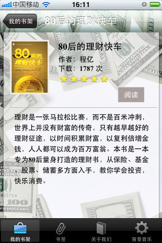 7月18日新增5本致富秘籍 ------------------------------------ 人人都渴望致富,更希望能快速致富。 世上快速致富的方式有哪些?哪种致富方式又适合我们呢? 思考致富是本合集的核心内容,如果我们把致富当成成功的全部定义,那生活就索然无味了,但是不可否认,致富往往是成功的第一步。 其实致富也是一门科学。当然,致富和理财是分不开的。如果你从未作过投资,那么,即刻开始,永不嫌迟。如果你准备精通金钱的艺术、科学与哲理,了解人生的经历和表达的真相,那么请你细细品味这些珍贵的书籍。 本合集从理财、投资、基金、股票、储蓄、金融多方面入手,叫你学会投资,理财。有心致富的人。如果你想在有生之年致富却不知如何下手,恭喜各位!在这就能找到你想要的书。 ------------------------------------ 书籍列表 股市倍增术 学以致富 腰缠万贯 怎样选择成长股 炒股的智慧 华尔街操盘高手 股票作手回忆录 世界首富沃伦巴菲特 金融炼金术 聪明的投资者 理财圣经 拱出银行的小猪 80后理财快车 富爸爸,穷爸爸 30岁之后靠钱赚钱 百万富翁速成指南 看故事学理财 家庭理财枕边书 我是快乐小富婆 ------------------------------------ appsbooks开微博啦!马上关注我们的微博,大家都有机会获得推广码免费体验! 新浪微博 http://weibo.com/2185148310 搜狐微博 http://t.sohu.com/u/151680248 腾讯微博 http://t.qq.com/a888999-gao ------------------------------------