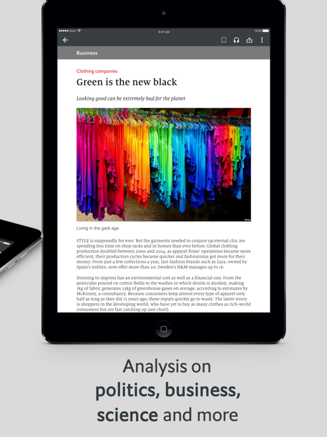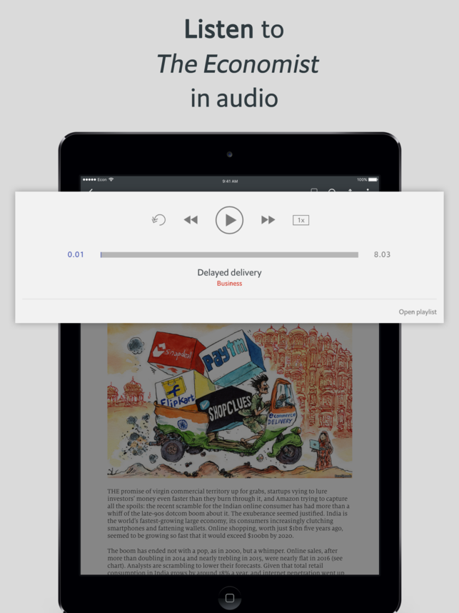 The Economist weekly magazine, digital edition Users on iOS 10.3 or above can explore an expanded version of this app, incorporating daily and weekly updates, along with a morning briefing by searching for ‘The Economist’. Readers can access their essential global briefing on current affairs, busi…