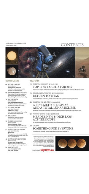SkyNews is a hands-on magazine for amateur astronomers in Canada. It’s written for active stargazers including beginners and intermediates. Each issue contains a current Star Chart for Canada and the northern U.S., seasonal observing tips, expert equipment reviews, space news, a Photo Gallery of rea…