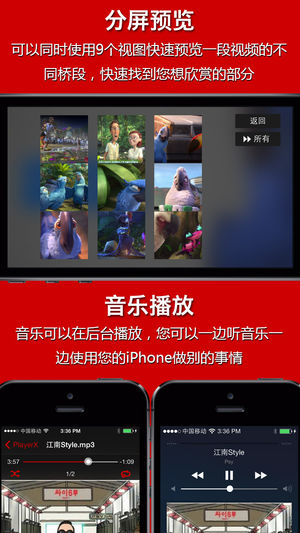 **5折促销,要的快下!** 『掌握影音』是一款全能的播放器,它几乎可以直接播放所有常见的视频或音频格式,而无需转换格式。而且它比iPhone/iPod自带的播放器具备更多的传输方式,除了通过USB传输外,您还可以使用浏览器通过WiFi网络上传内容,或者存储并播放邮件附件中的视频或音乐。 关键功能: * 视频播放 - 可以直接播放包括RMVB, MKV, AVI, WMA, FLV, ASF, MP4, MOV在内的几乎所有常见视频格式,无需转换格式. - 分屏预览功能,可以同时使用9个视图快速预览一段视频的不同桥段,快速找到您想欣赏的部分 - 记录视频的最后播放位置 - 播放视频时可…